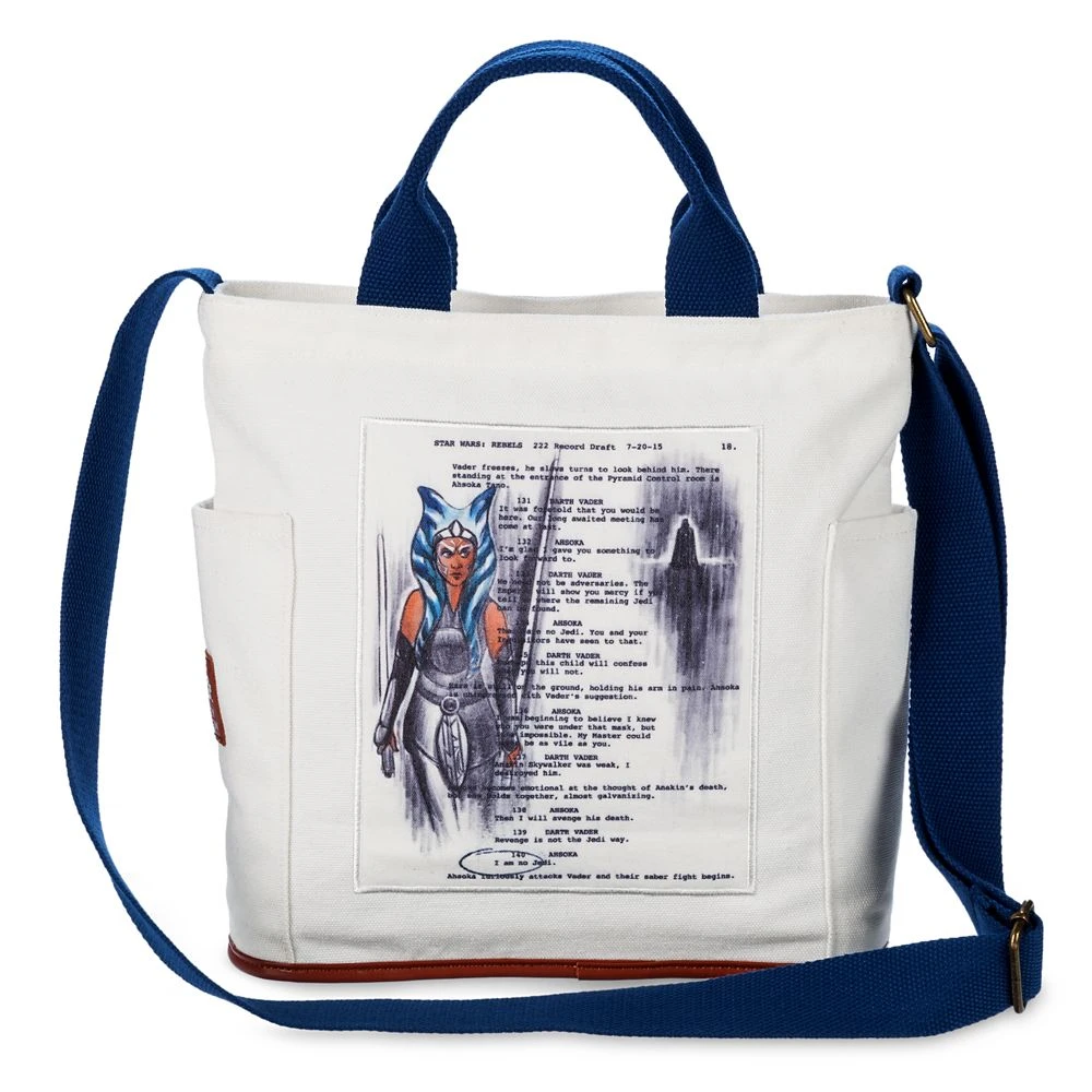 The former Jedi Padawan, Ahsoka Tano, renounces her past with the statement ”I am no Jedi” on this canvas tote. Created for Star Wars by Ashley Eckstein, this bag’s design is as tough as the character who inspired it. The front features an embroidered Star Wars logo while the back has a printed page from a Star Wars: Rebels script. There’s also a shoulder strap for added versatility.