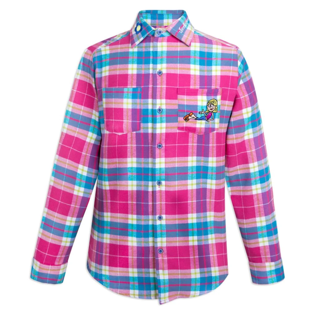 The memorable quote aimed at Lizzie McGuire is emblazoned across the back of this flannel shirt from Cakeworthy. ”Lizzie McGuire, you’re an outfit repeater” appears as if painted on this soft cotton top which features the teen embroidered on the front pocket and her name embroidered on the collar. You’re sure to become a stylish ”outfit repeater” with this bold shirt.