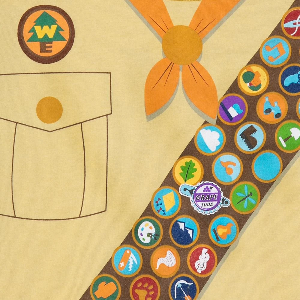 Sign them up for a stint with the Wilderness Explorers in this badge-covered Russell uniform graphic tee, with authentic costume graphic design as seen in Disney and Pixar’s Up.